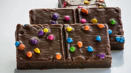 The early 2000's era Little Debbie classic, Cosmic Brownies, have made their way back into the hearts, stomachs, and snack drawers of foodies everywhere. Known for their fudgy consistency and brightly colored chocolate-knub topping, this treat is the epitome of nostalgia feeding our inner child. But, with the wisdom of world renowned Pâtissier Adriano Zumbo, we've discovered how to turn this childhood treat into an adults-only recipe.